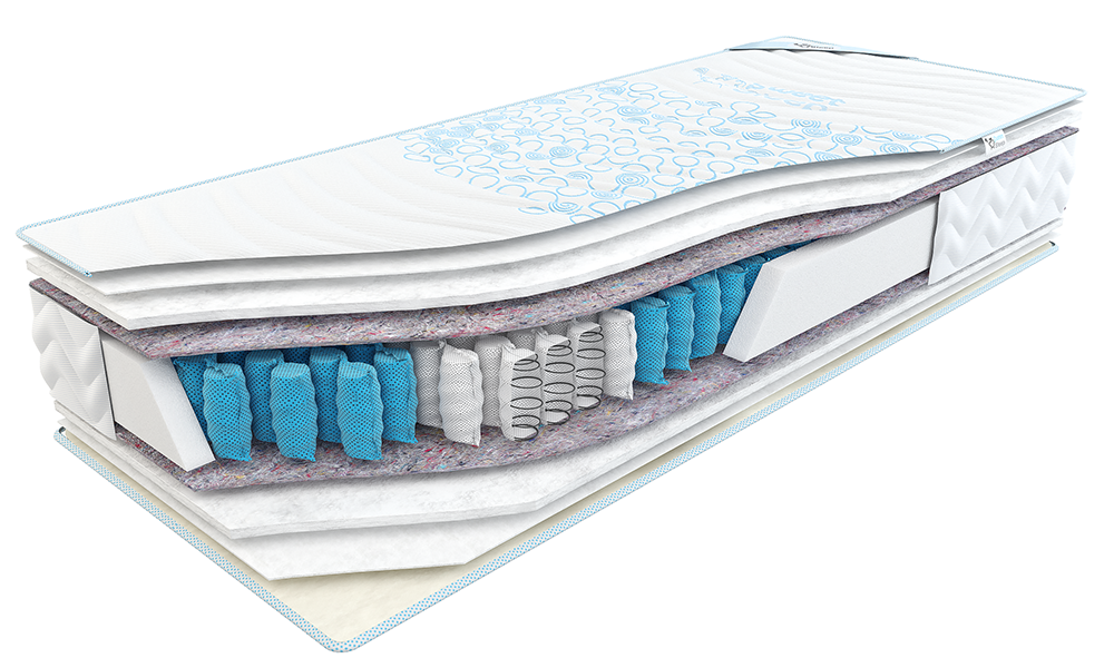 Модель з яскраво вираженими ортопедичними властивостями. Поєднання 5-ти зонного пружинного блоку Pocket Spring і шару Thermoflex з обох сторін матраца, гарантує прікрасний і комфортний сон протягом всієї ночі. Спальне місце цього матраца витримує до 120 кг, а його висота становить 19 см.